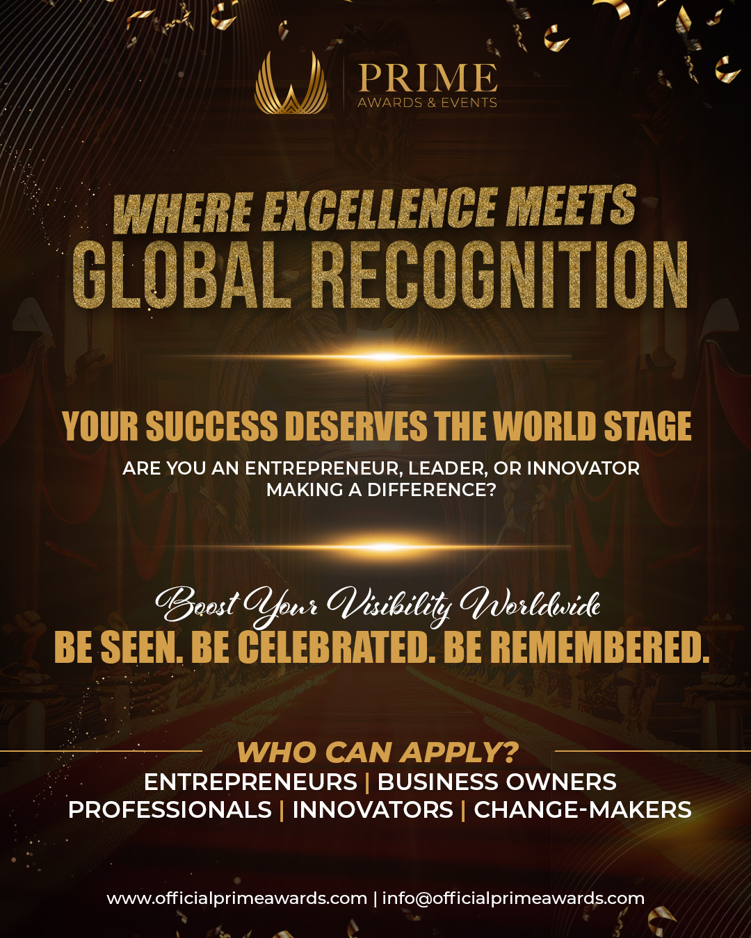 Prime Events offers comprehensive Image Branding and Visibility Solutions designed to elevate personal and corporate brands on a global scale. Through strategic public relations, premium magazine features, and targeted social media marketing, we help clients build credibility, authority, and recognition. Our PR services enhance brand perception through curated media exposure, while magazine features position clients as industry leaders and thought influencers. Social media marketing further amplifies reach, ensuring consistent and impactful digital presence. These services are tailored for professionals, entrepreneurs, and organizations seeking refined visibility, long-term brand value, and global recognition.